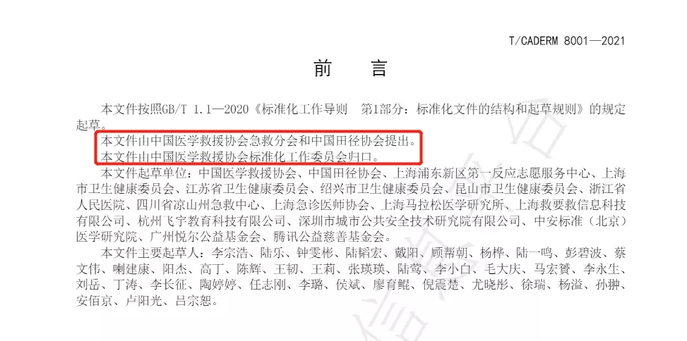 中国医学救援协会、中国田径协会、上海浦东新区第一反应志愿服务中心、上海市卫生健康委员会、江苏省卫生健康委员会、绍兴市卫生健康委员会、昆山市卫生健康委员会、浙江省人民医院、四川省凉山州急救中心、上海急诊医师协会、上海马拉松医学研究所、上海救要救信息科技有限公司、杭州飞宇教育科技有限公司、深圳市城市公共安全技术研究院有限公司、中安标准(北京)医学研究院、广州悦尔公益基金会、腾讯公益慈善基金会。